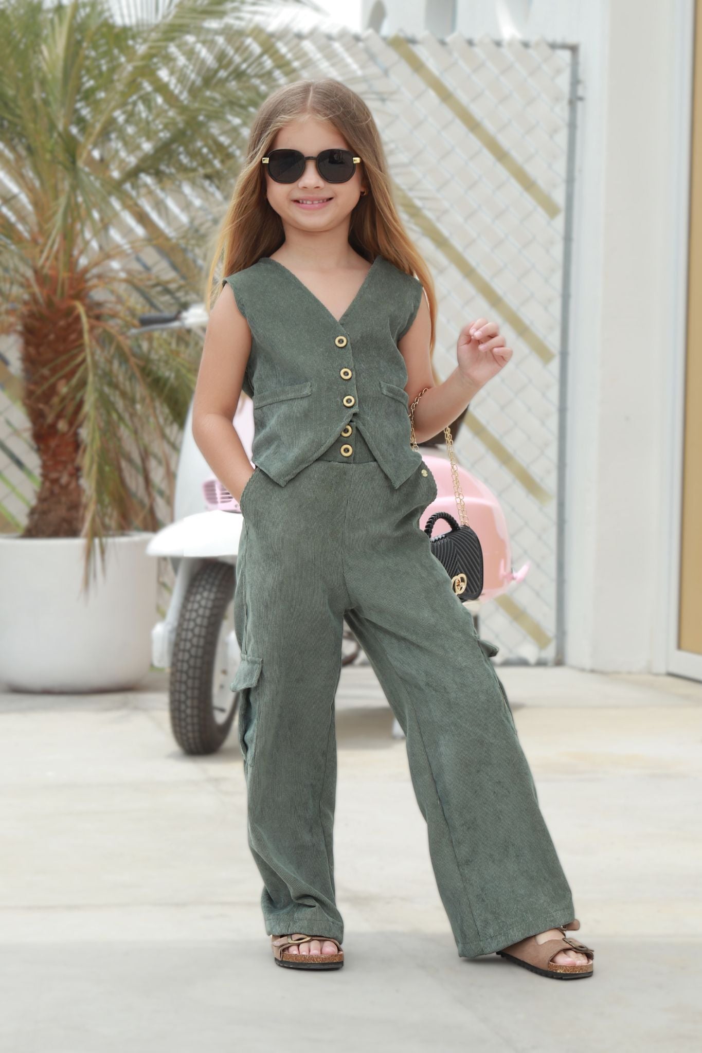 La modelo tiene 9 años, mide 1,35cm y está usando la talla 10-12