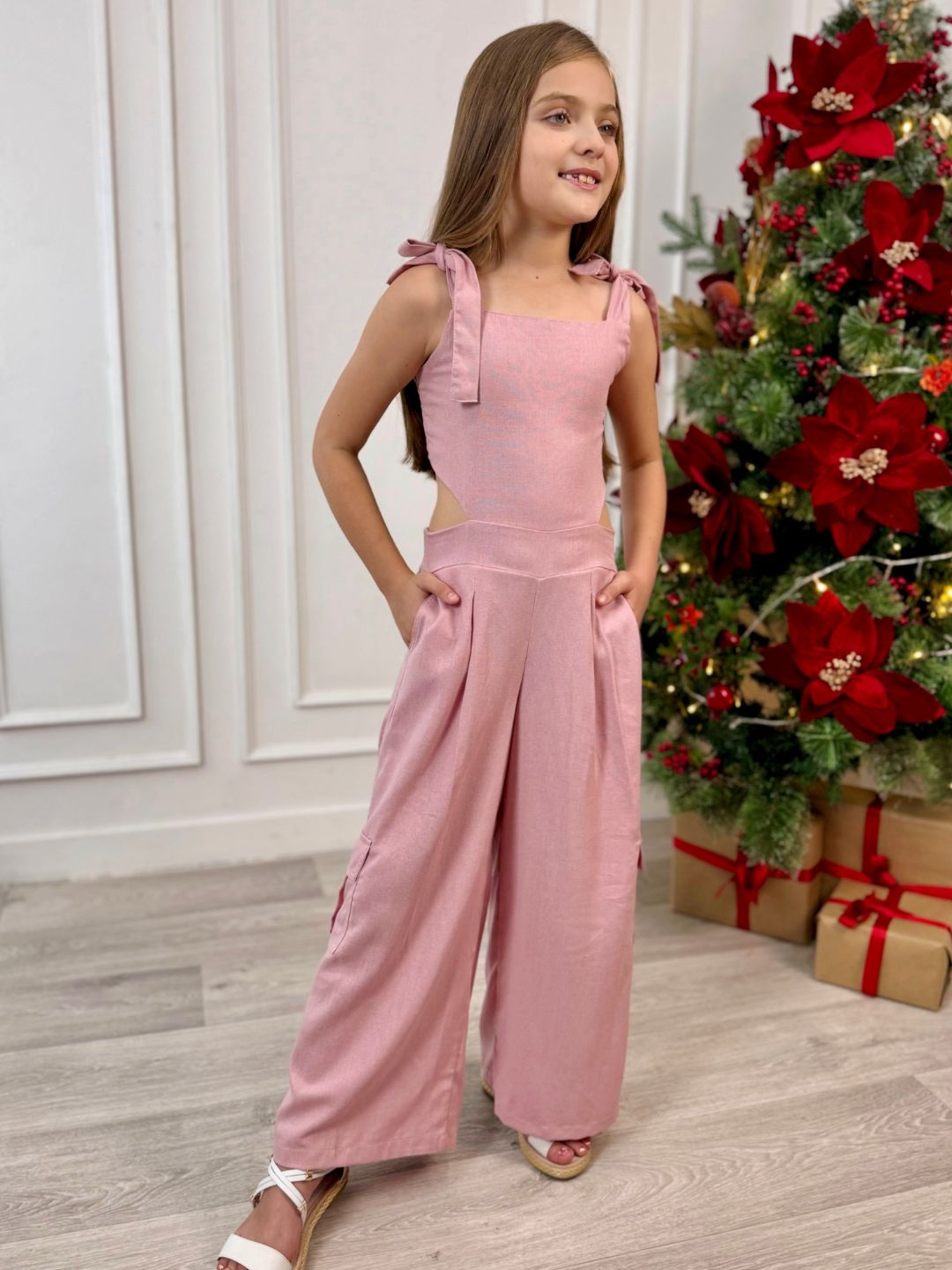 La pequeña tiene 5 años, mide 110cm y está usando la talla 2-4, la modelo grande tienen 8 años, mide 1.35 m y está usando la talla 10-12