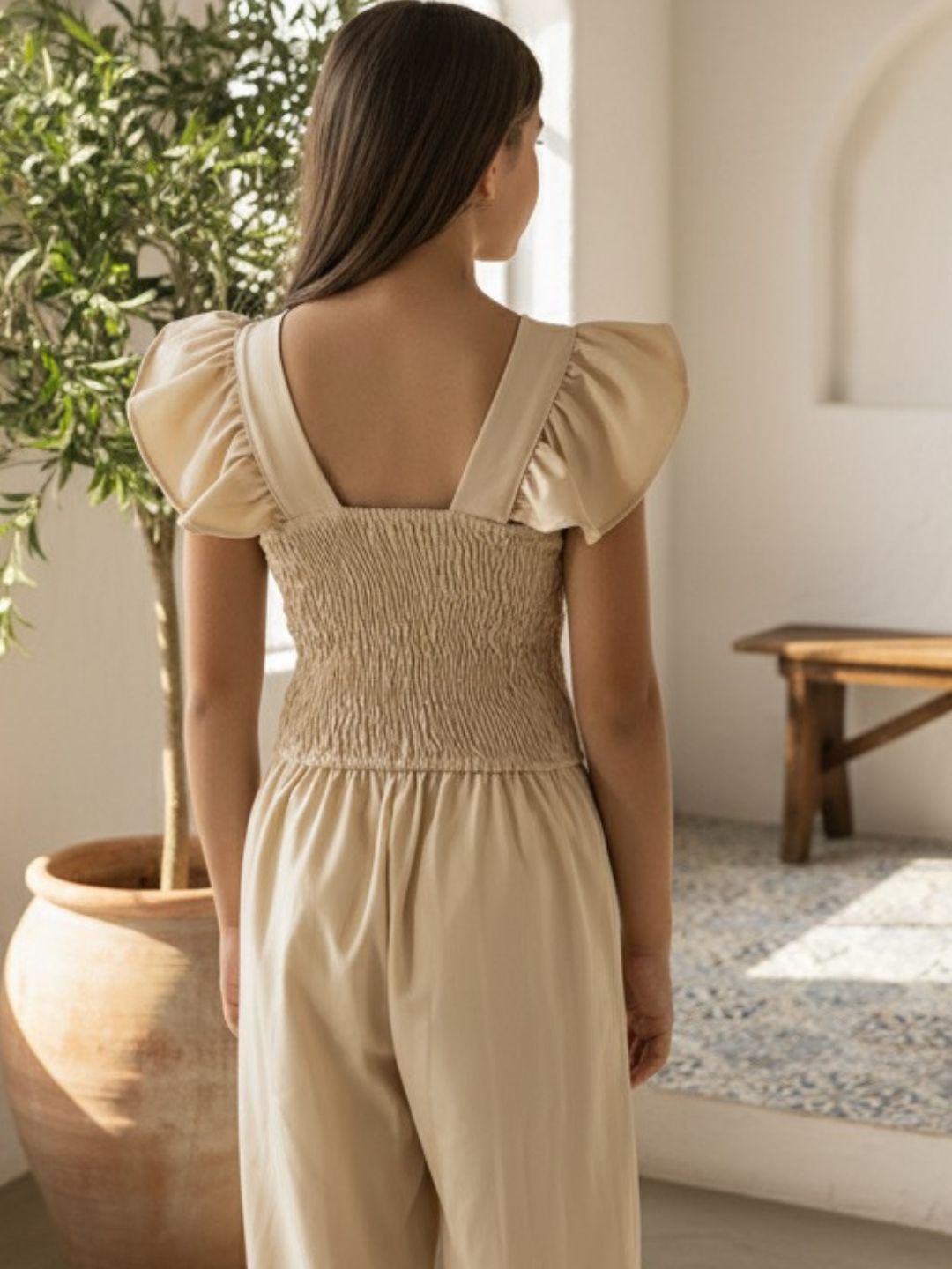 La modelo tiene 10 años, mide 1,45cm y está usando la talla 14-16