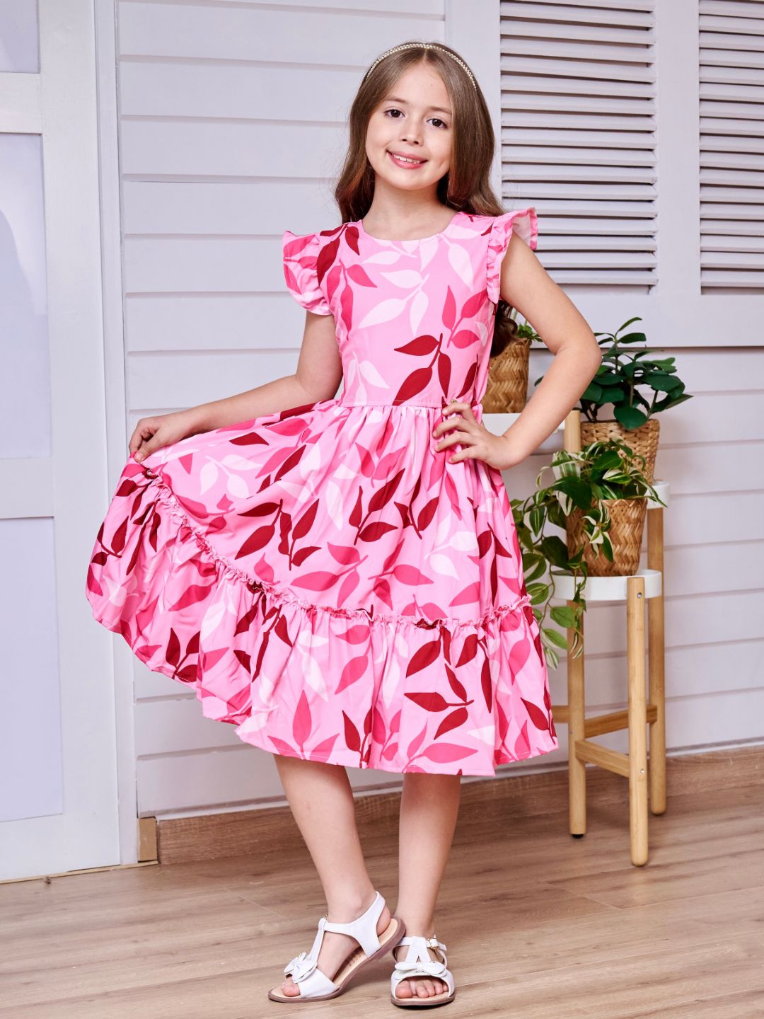 La modelo tiene 6 años, mide 1,30m y está usando la talla 10-12.