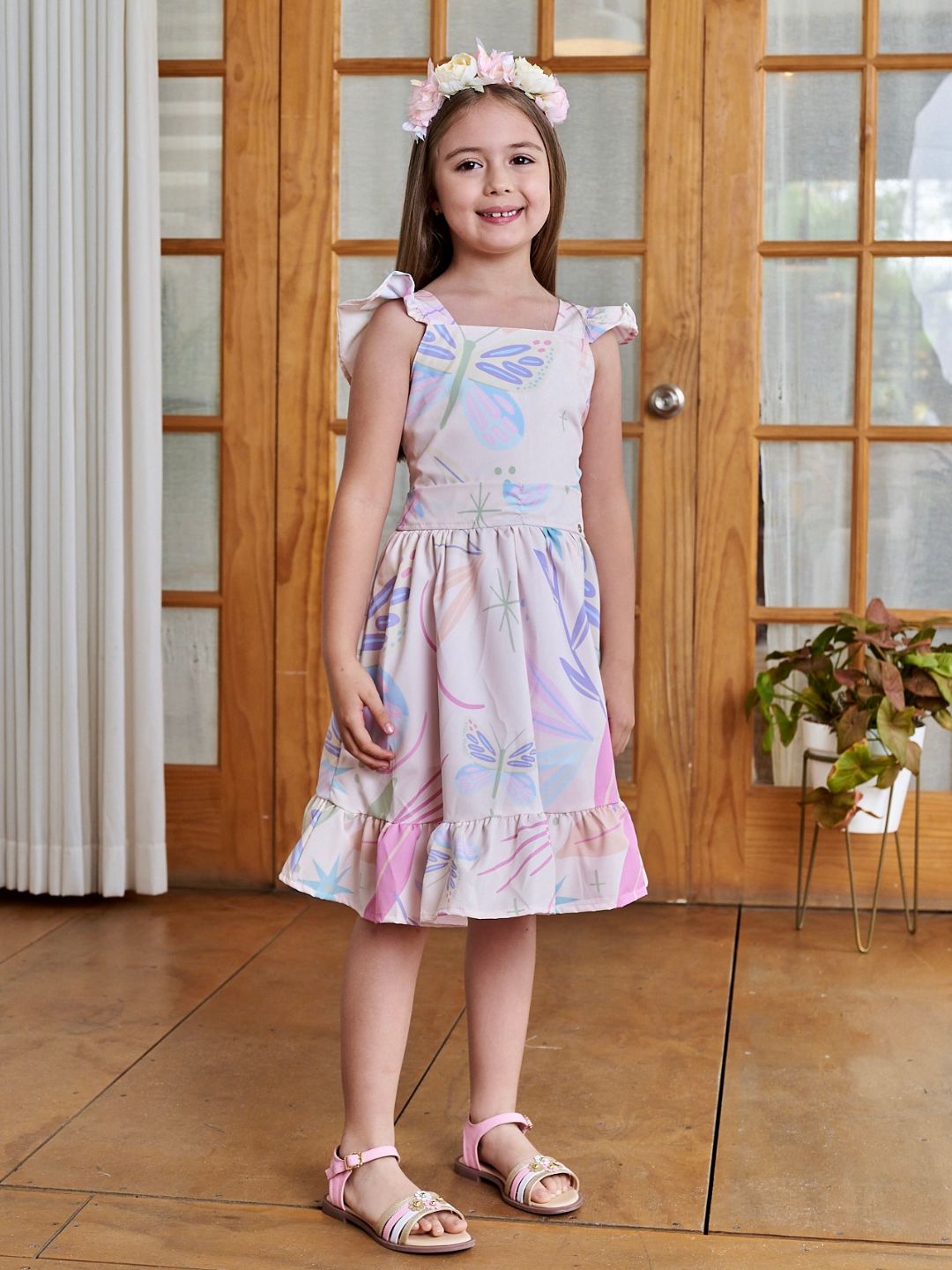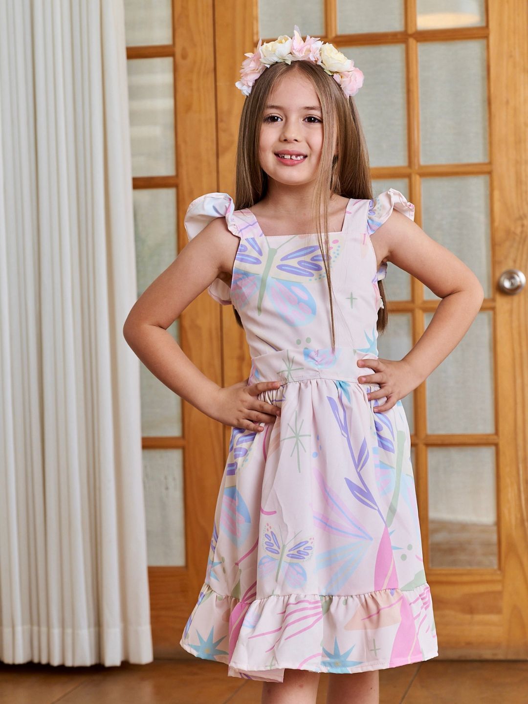 La modelo del vestido azul tiene 5 años, mide 1,20 y está usando la talla 6-8.