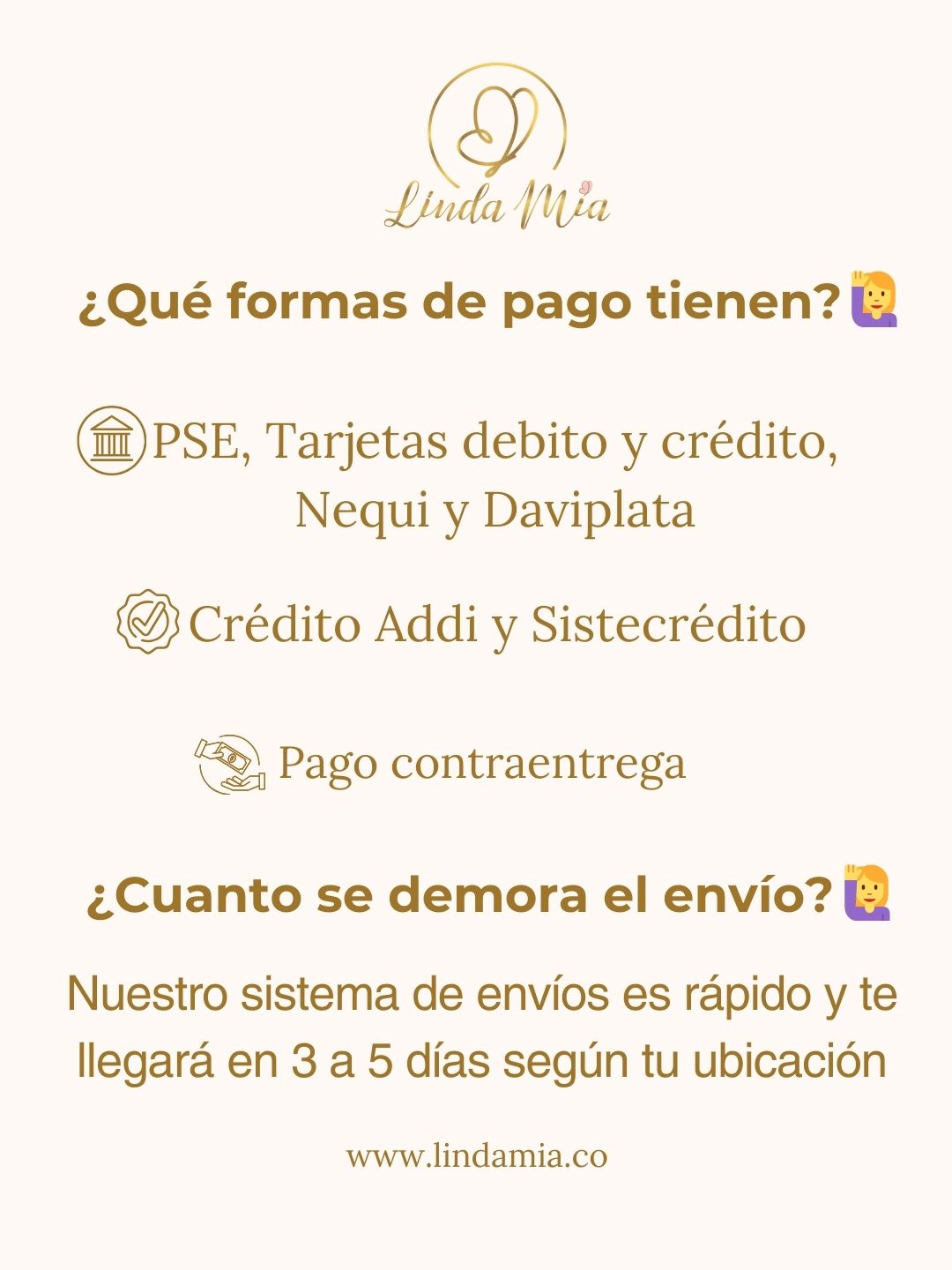 ¿Qué medios de pago manejan? Pago en efectivo contraentrega, crédito Addi, Sistecrédito, Pago por medio de tu banco (PSE)